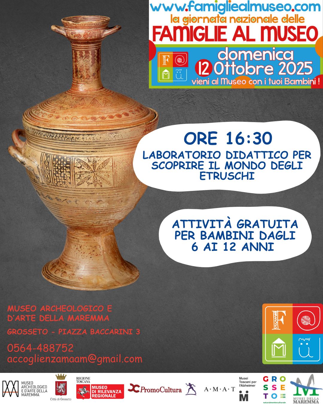 museoMAAM2025-10-07T11:12:37+02:00Domenica 12 ottobre è la Giornata Nazionale delle Famiglie al Museo. Il Museo Archeologico e d'Arte della Maremma sarà aperto con orario 10:00-13:00/16:00-19:00 e ingresso GRATUITO. Alle ore 16:30 vi aspettiamo inoltre con il nostro [...]