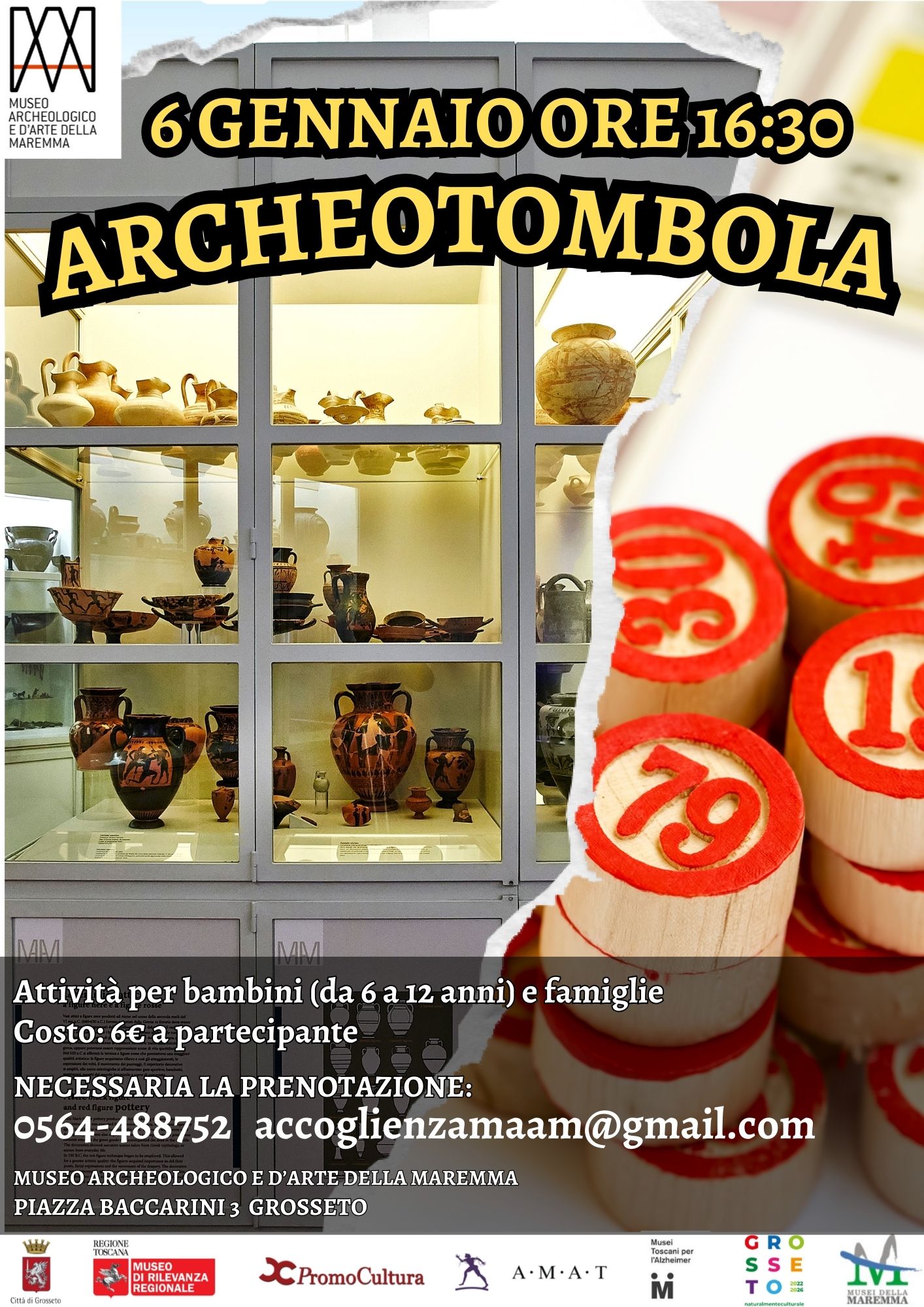 museoMAAM2026-01-02T08:22:41+01:00Domenica 4 gennaio primo appuntamento con la Festa dei Musei di Maremma. Vi aspettiamo al MAAM alle ore 16:30 con una visita guidata gratuita alla sezione dedicata ai reperti di Roselle. Necessaria la prenotazione ai [...]